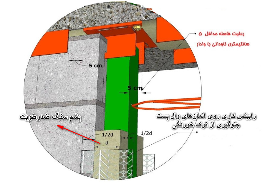 در واقع دلیل ایجاد این ترک ها در محل نصب والپست یا هر المان فلزی دیگر اختلاف ظرفیت گرمایی مقطع با جنس متفاوت و انبساط و انقباض بر اثر کاهش و افزایش دما می باشد.